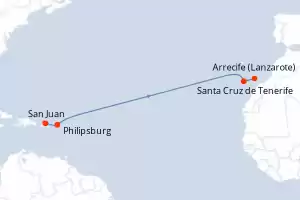 Itinerario : San Juan, Philipsburg, Santa Cruz de Tenerife, Arrecife (Lanzarote)