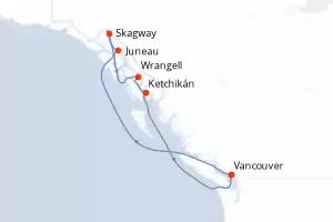 Itinerario : Vancouver, Juneau, Skagway, Wrangell, Ketchikán, Vancouver