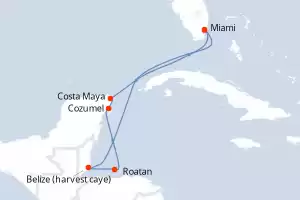 Itinerario : Miami, Belize (harvest caye), Roatan, Cozumel, Costa Maya, Miami