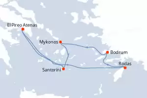 Itinerario : El Pireo Atenas, Rodas, Bodrum, Mykonos, Santoríni, El Pireo Atenas