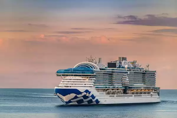 El buque Sun Princess tiene 345 m de eslora y 21 cubiertas. Tiene capacidad para un máximo de 4300 pasajeros en 2150 camarotes.