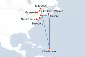 Itinerario : Nueva York, Newport, Portland (Maine), Halifax, Charlestown, Saguenay, Quebec, Montreal, Nueva York, Newport, Portland (Maine), Halifax, Charlestown, Saguenay, Quebec, Montreal