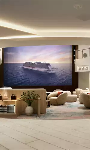 Camarotes modernos y suites elegantes con vistas al mar