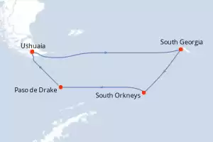 Itinerario : Ushuaia, South Georgia, South Orkneys, Paso de Drake, Ushuaia