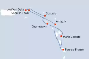 Itinerario : Fort-de-France, Antigua, Spanish Town, Jost Van Dyke, Gustavia, Charlestown, Marie Galante, Fort-de-France