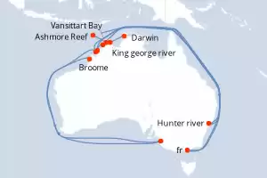 Itinerario : Darwin, Ambon, Ile Missool, Yenwaupnor, Mansuar Island, Manokwari, Cenderawasih Bay, Jayapura, Vanimo, garove island, Duke of York Island, Rabaul, Gizo, Honiara (Islas Salomon), vanikoro, Ile Ambrym, Lautoka, Kadavu Island, Fulaga, Vavau, Nukupule Island, Apia, Aitutaki, Raiatea, Huahine, Papeete, Anaa, Toau, Fakarava, Pitcairn, Ducie Island, Isla de Pascua, Iles de Juan Fernandez, San antonio Chile