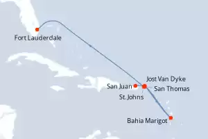 Itinerario : San Juan, Jost Van Dyke, Saint John's, Gustavia, San Thomas, Fort Lauderdale