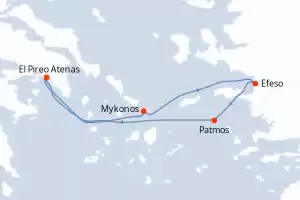 Itinerario : El Pireo Atenas, Patmos, Efeso, Mykonos, Naxos, El Pireo Atenas, Patmos, Efeso, Mykonos, Naxos, El Pireo Atenas