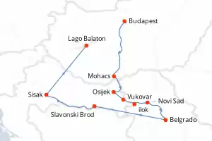 Itinerario : Budapest, Mohacs, Osijek, Vukovar, ilok, Novi Sad, Belgrado, , Slavonski Brod, , Sisak, Lago Balaton